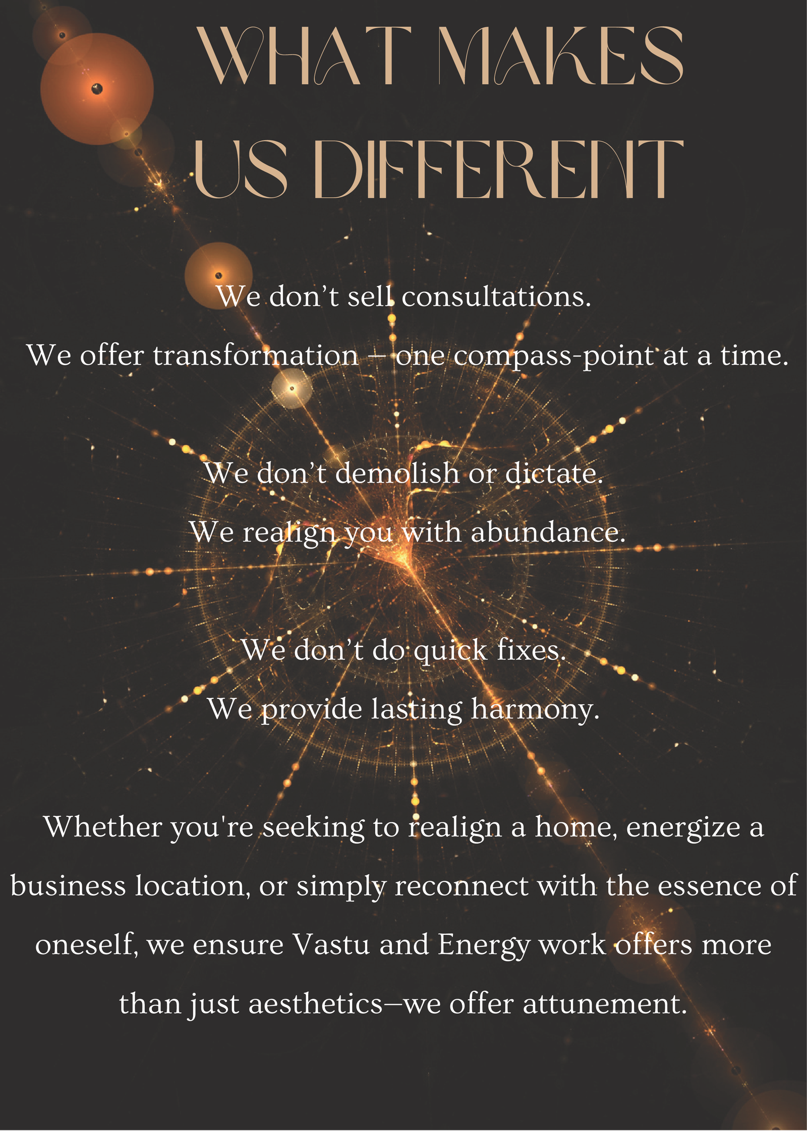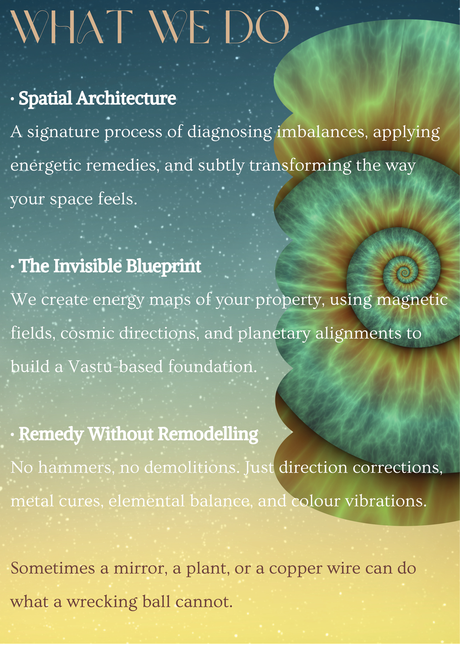 With 25 years of experience, we understand that ancient architectural wisdom when merged with intuitive energy balancing, creates environments that support flow, prosperity, and inner peace and our consultants are committed to providing personalized solutions tailored to your unique needs in-line with these principles.